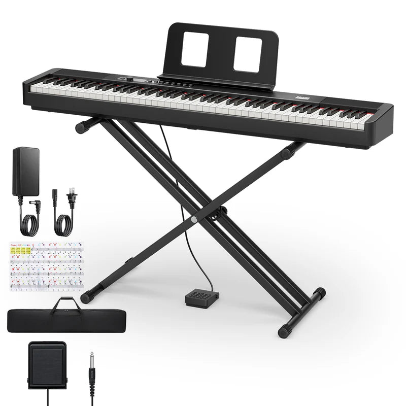 【Calidad de sonido mejorada】Este teclado de piano portátil transmite un audio excepcional a través de sus dos altavoces de 25W, añadiendo profundidad y resonancia a tu música y garantizando una experiencia auditiva detallada y realista.