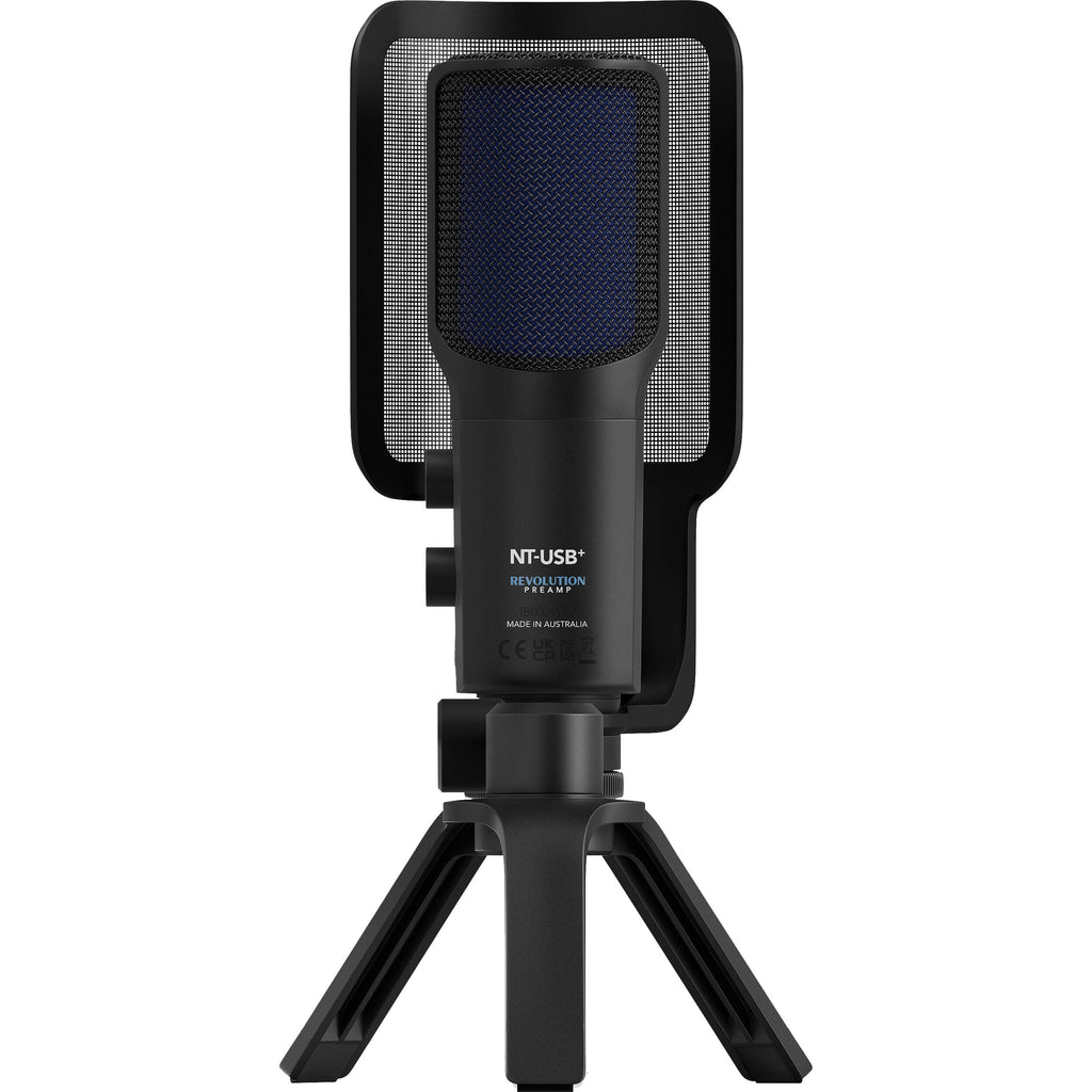El NT-USB+ viene con todo lo que necesitas para empezar a grabar de inmediato, como un soporte de escritorio para colocarlo perfectamente y un filtro antipop de alta calidad para mantener tus grabaciones limpias.