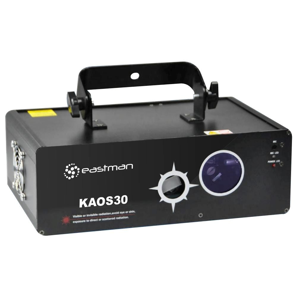 Transforma tus eventos con el impresionante láser multicolor Eastman KAOS30. Este dispositivo combina luces rojas, verdes y azules para crear efectos visuales espectaculares que capturarán la atención de todos.
