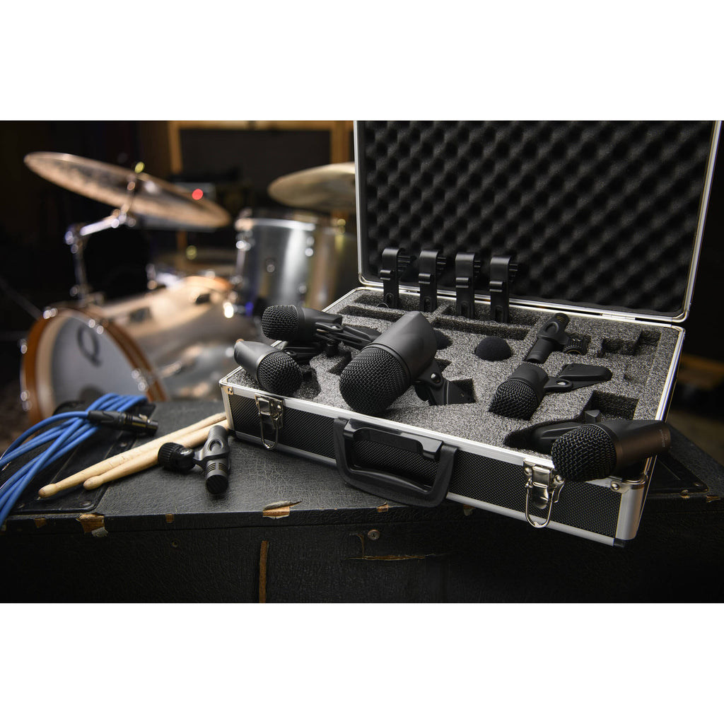 Empezando por la base, el micrófono dinámico para bombo BD-1 proporciona una respuesta de frecuencia adaptada para capturar tanto el boom como el ataque de su bombo para un sonido ajustado y robusto. Los cuatro micrófonos dinámicos ST-4 sacarán lo mejor de los toms y las cajas, sin molestar al baterista, gracias a los soportes ajustables incluidos. Para capturar el chisporroteo de los platillos y el ambiente de la sala, utilice los dos condensadores de diafragma pequeño OH-2 emparejados para añadir espacio y movimiento a su batería. Todo ello se suma a un útil y versátil surtido de micrófonos, que incluye soportes y un estuche de transporte rígido.
